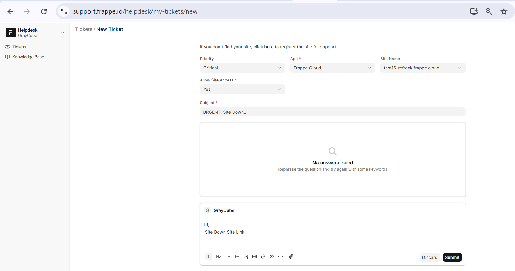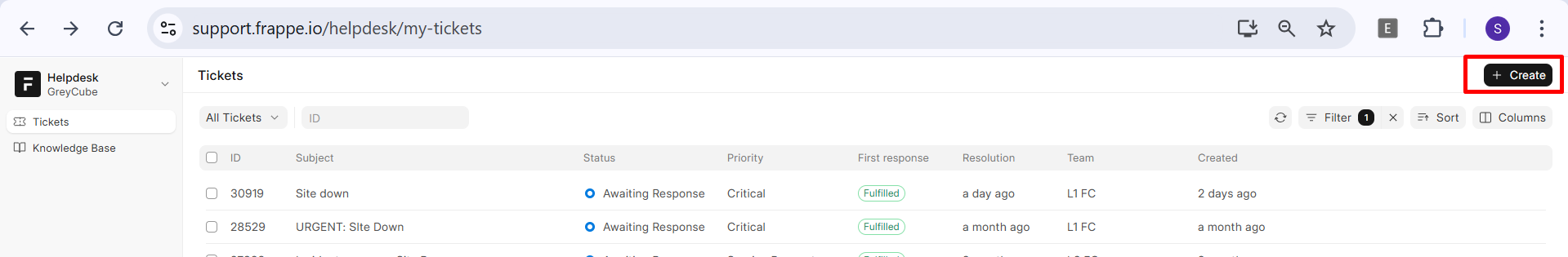 - Go to the Support Site: https://support.frappe.io/helpdesk.