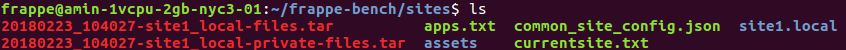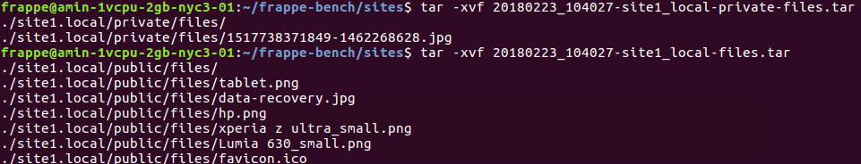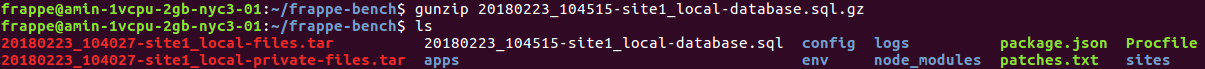 [3]Restore DB and site files- Now upload backup files. SQL file inside frappe-bench folder and sites file inside sites folder.