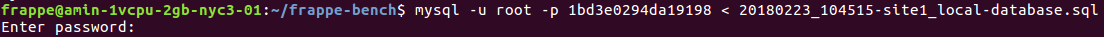 - $ mysql -u root -p "db_name" < 20180223_104515-site1_local-database.sql